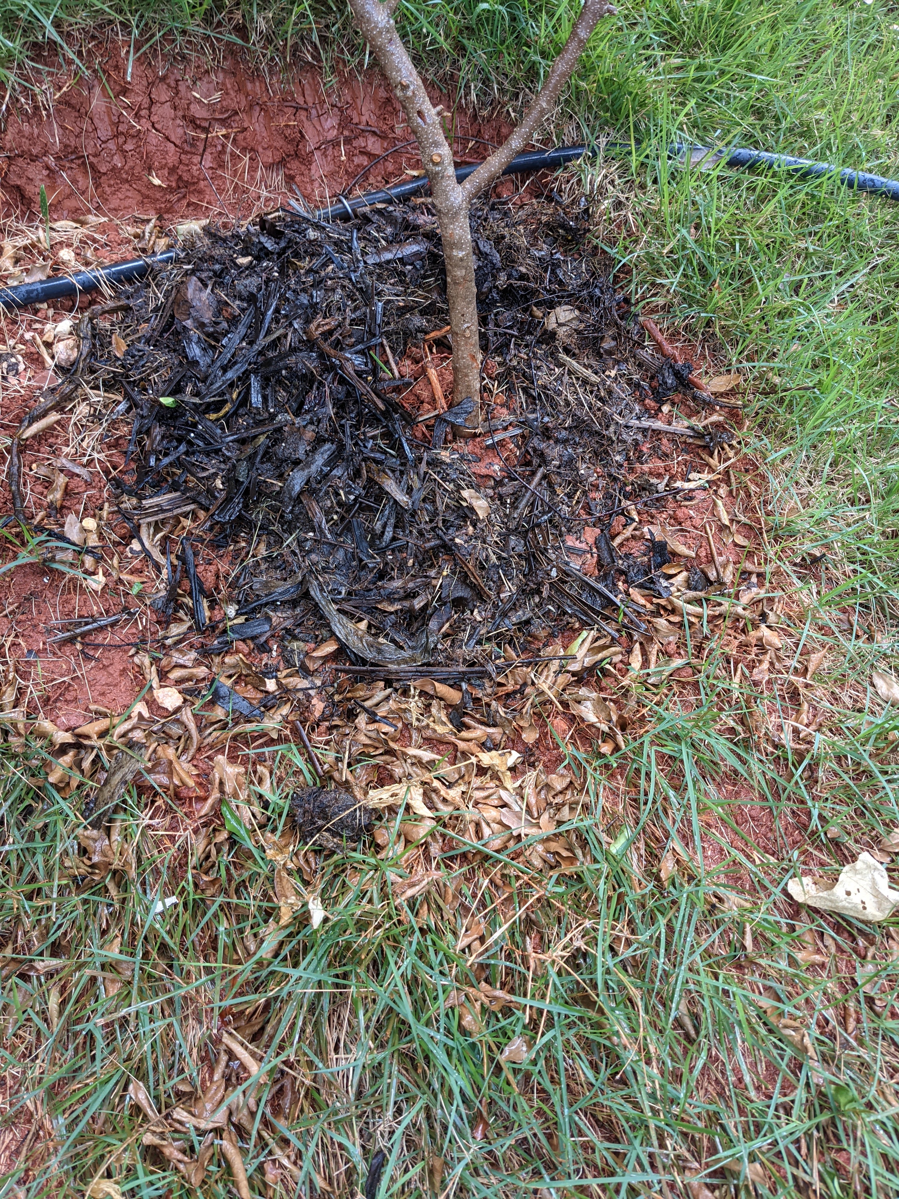 - Lastly, I added a layer around each tree, leaving some room around the trunk. And then I sprinkled some water on.