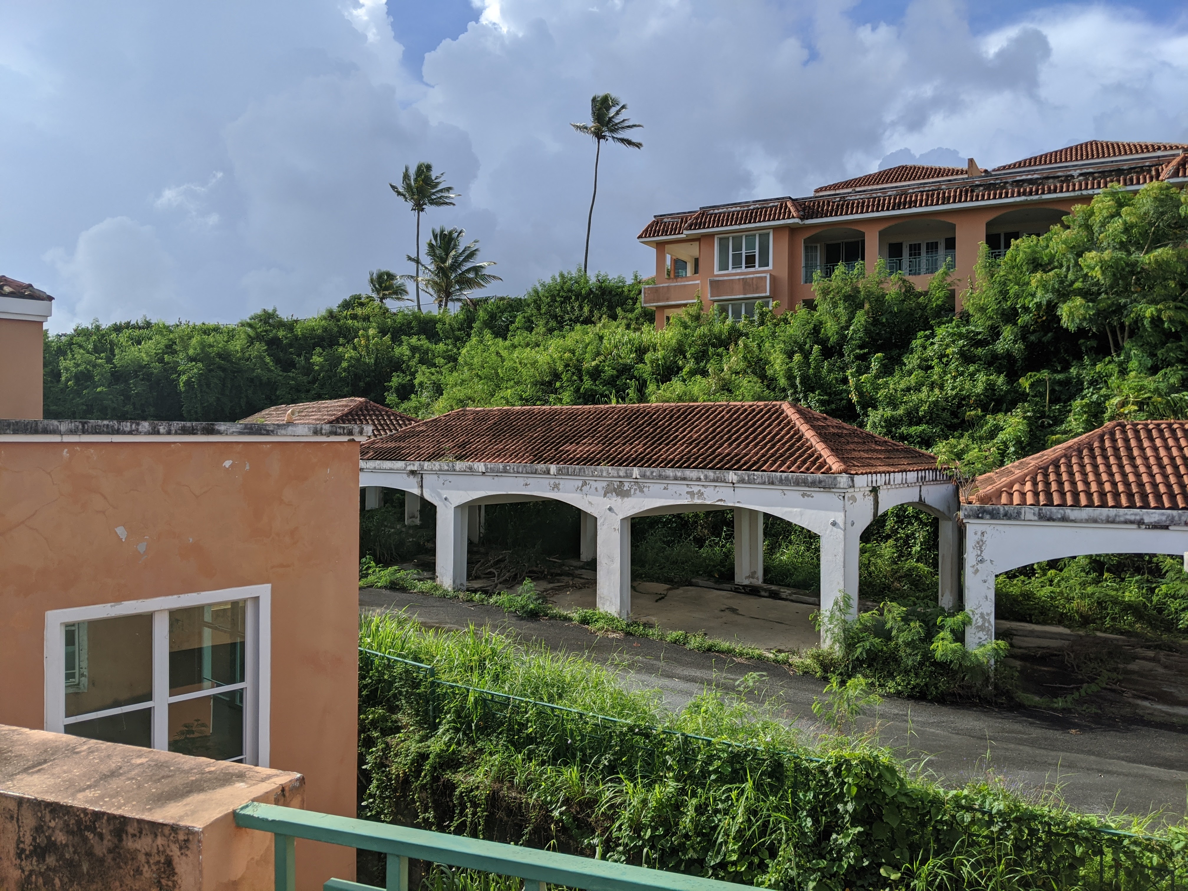 The complex consisted of some 200 units built on a hillside overlooking the sea and the famous Rio Mar resort. Despite being minutes from the beach and El Yunque, the place was practically abandoned. Maybe 30 units had residents. It was explained to me that many of the condos, purchased as vacation spots in the early 2000s, were sold off with the economic crash in 2008.