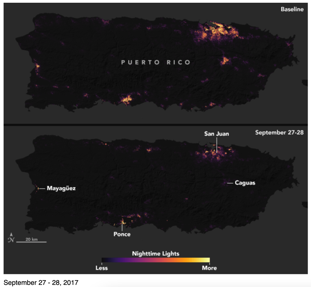 Lights in Puerto Rico before and after Hurricane Maria, from NASA