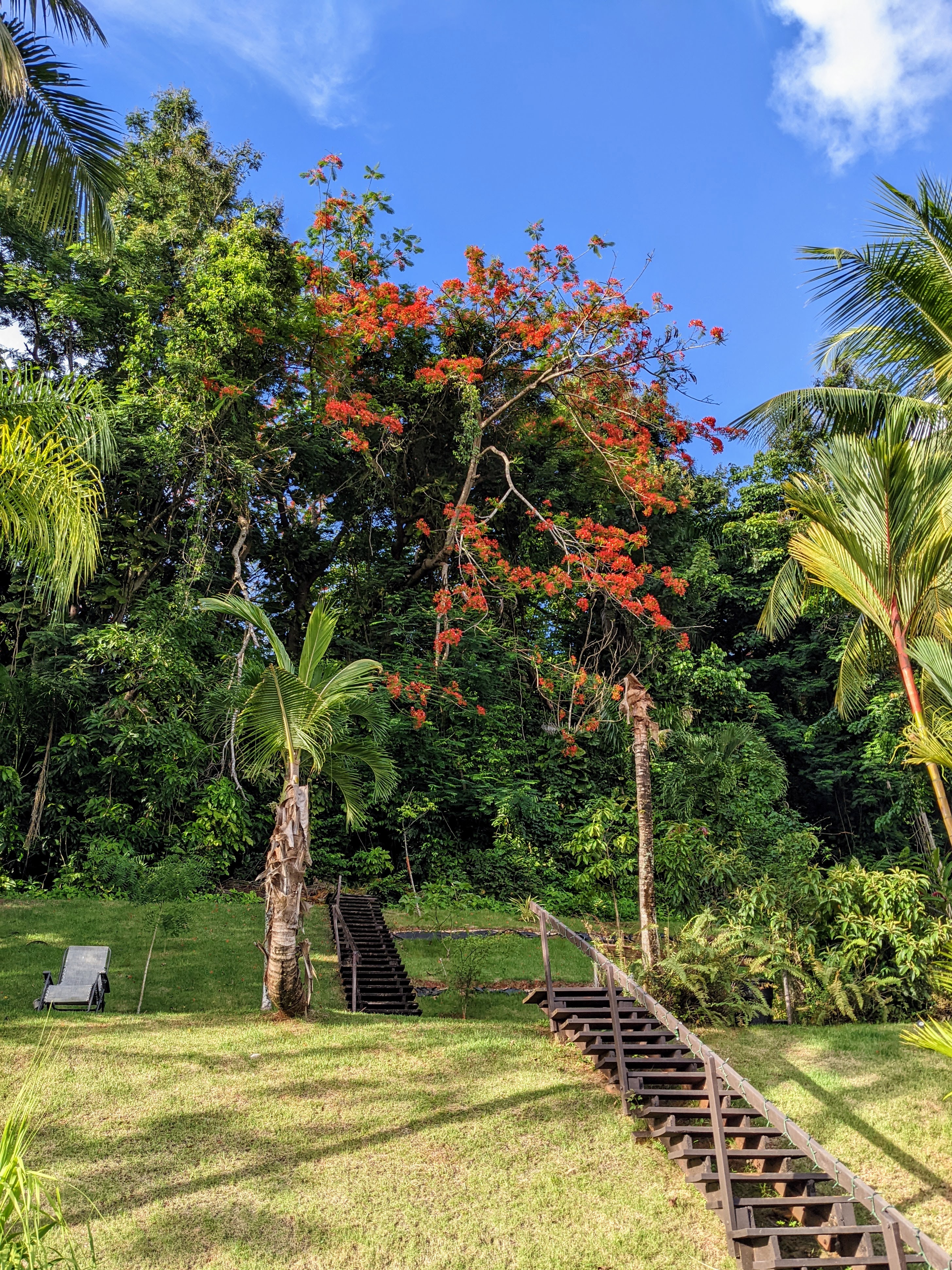 Together, my son and I walk around our yard and say good morning to any plants and animals we see along the way. (Usually our dog Pepa wants to sleep more and lies down by the front door. I think she’s been feeling the lack of sleep too.)