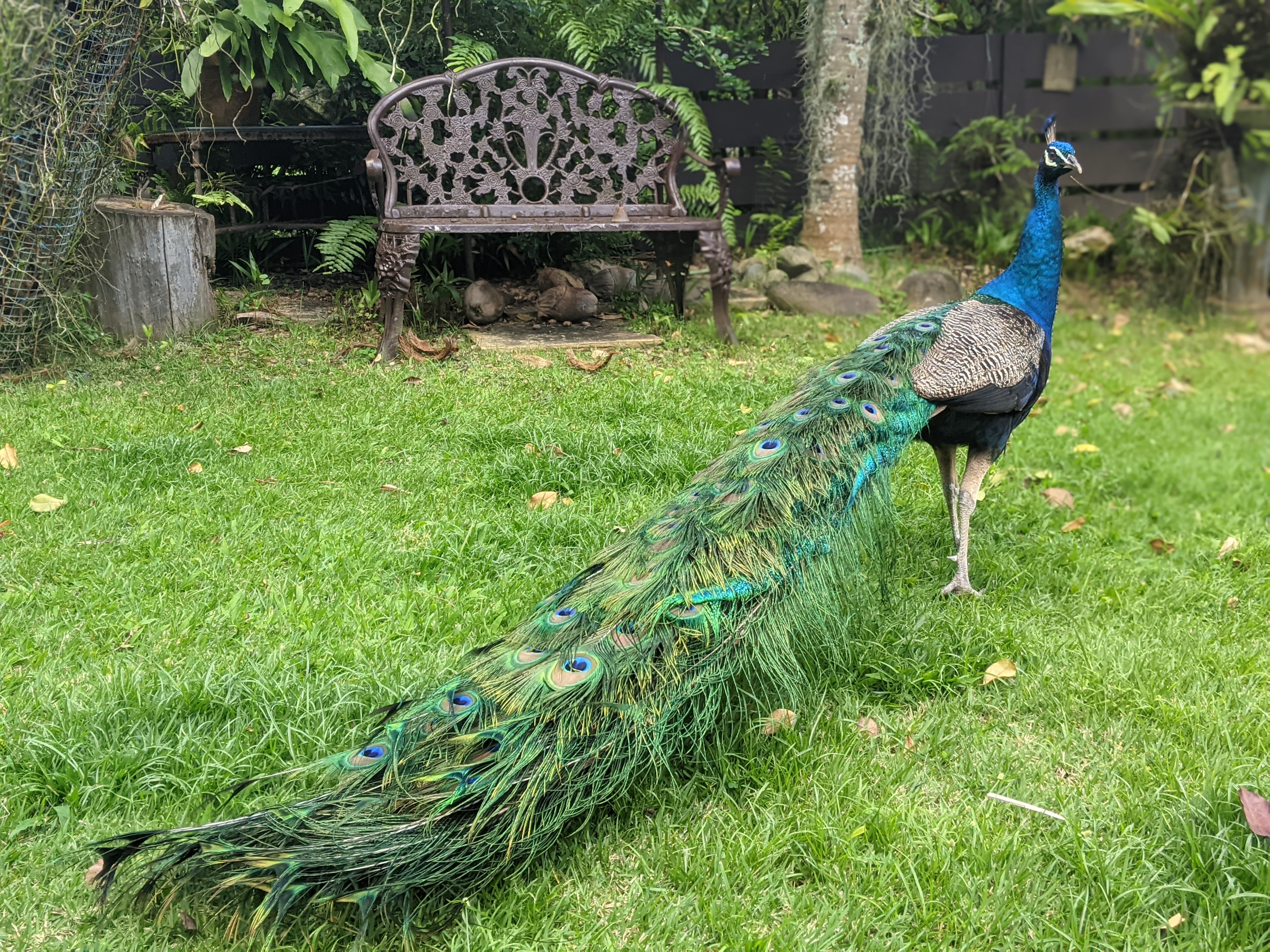 PS: The peacocks belong to our neighbor who lives on the hill above us. I’m not sure how many they have. They occasionally like to visit our backyard.